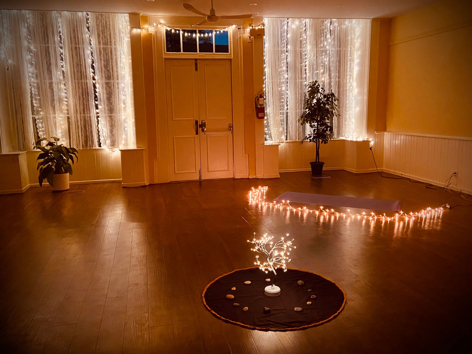 Experience the warmth of Burritts Rapids Community Hall, a cozy and inviting space beautifully illuminated with twinkle lights and candles to create a serene atmosphere. Each session, I bring oracle cards and crystals for a special intention-setting practice, adding a touch of mindfulness and magic to our journey together.